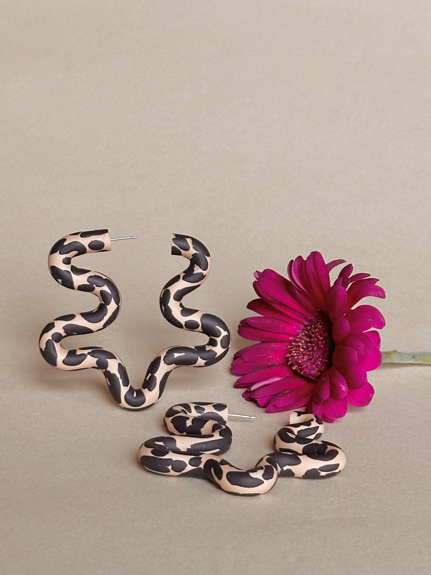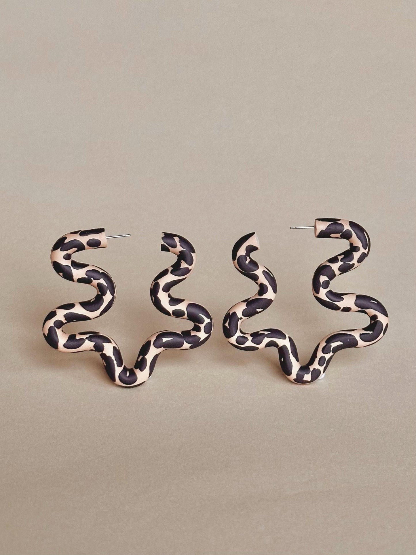 Say hello to your new favourite bold statement earrings! The leopard wiggle hoops are designed to turn heads and bringing a modern, chic edge to any outfit. Each pair is carefully handcrafted, with individually hand-cut leopard spots making every pair truly unique. Whether you're dressing up for a night out or adding a bit of fun to your daily style, these lightweight hypoallergenic hoops balance style with comfort beautifully.