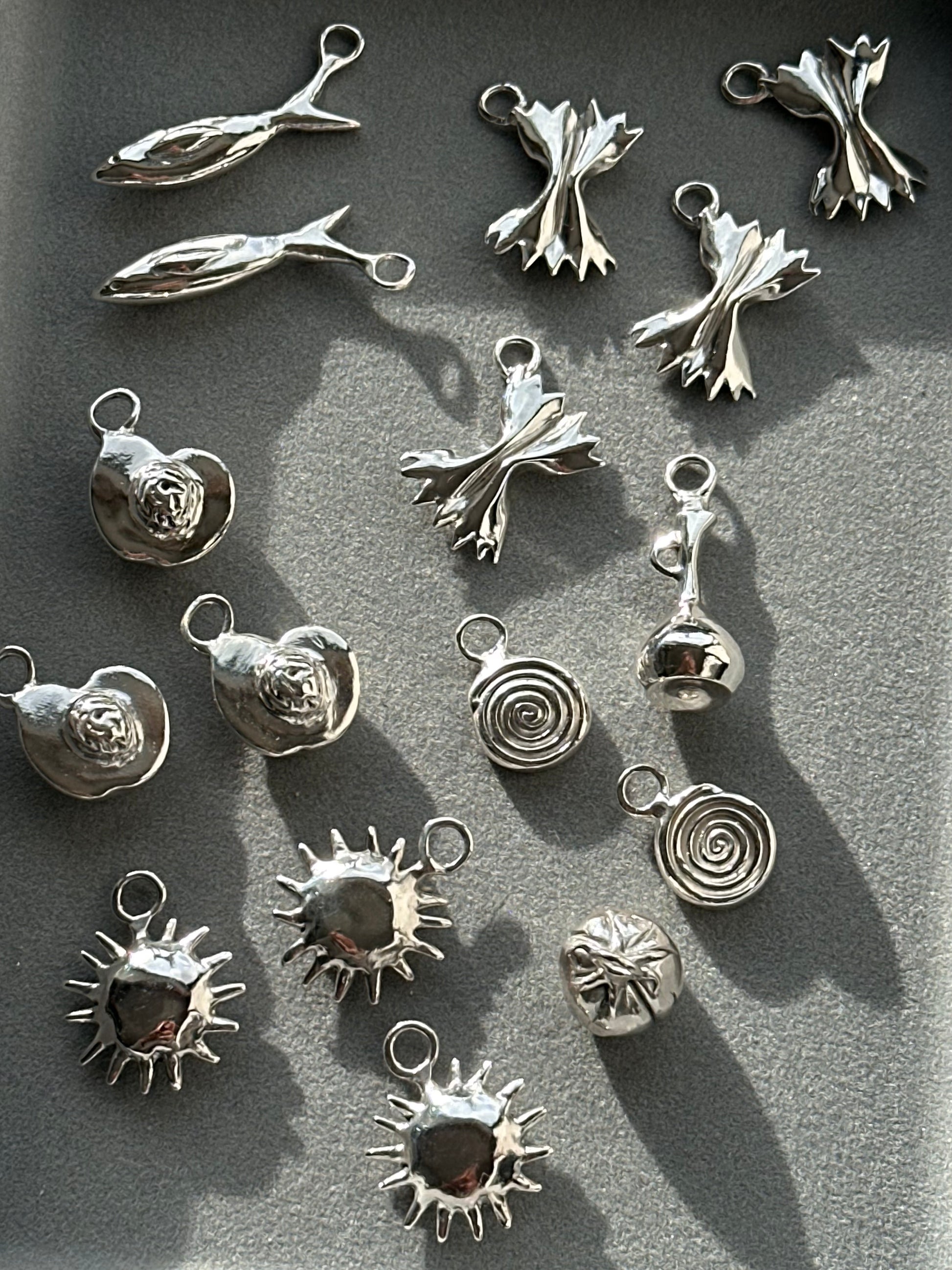 Each charm begins life hand-carved in jewellers wax before being cast in recycled sterling silver. They’re completely solid, no hollowing, which gives them that chunky, weighty feel without being uncomfortably heavy. Think luxury weight with everyday wearability.