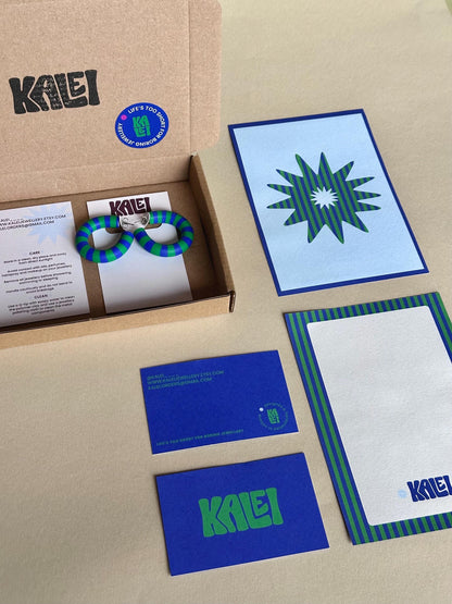 Turn heads and be prepared for compliments with these bold striped polymer clay hoops! Handcrafted from lightweight polymer clay, each pair features vibrant stripes in a playful geometric pattern, perfect for adding colour to your outfit without weighing down your ears. Available in three eye-catching colour-ways: Emerald + Cobalt, Burgundy + Hot Pink, and Sky + Matcha these hoops bring a fun, modern twist to your accessory game.