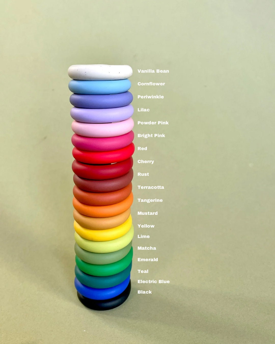 Super fun, versatile colourful clay hoops for those days that you want to effortlessly spice up a basic outfit.